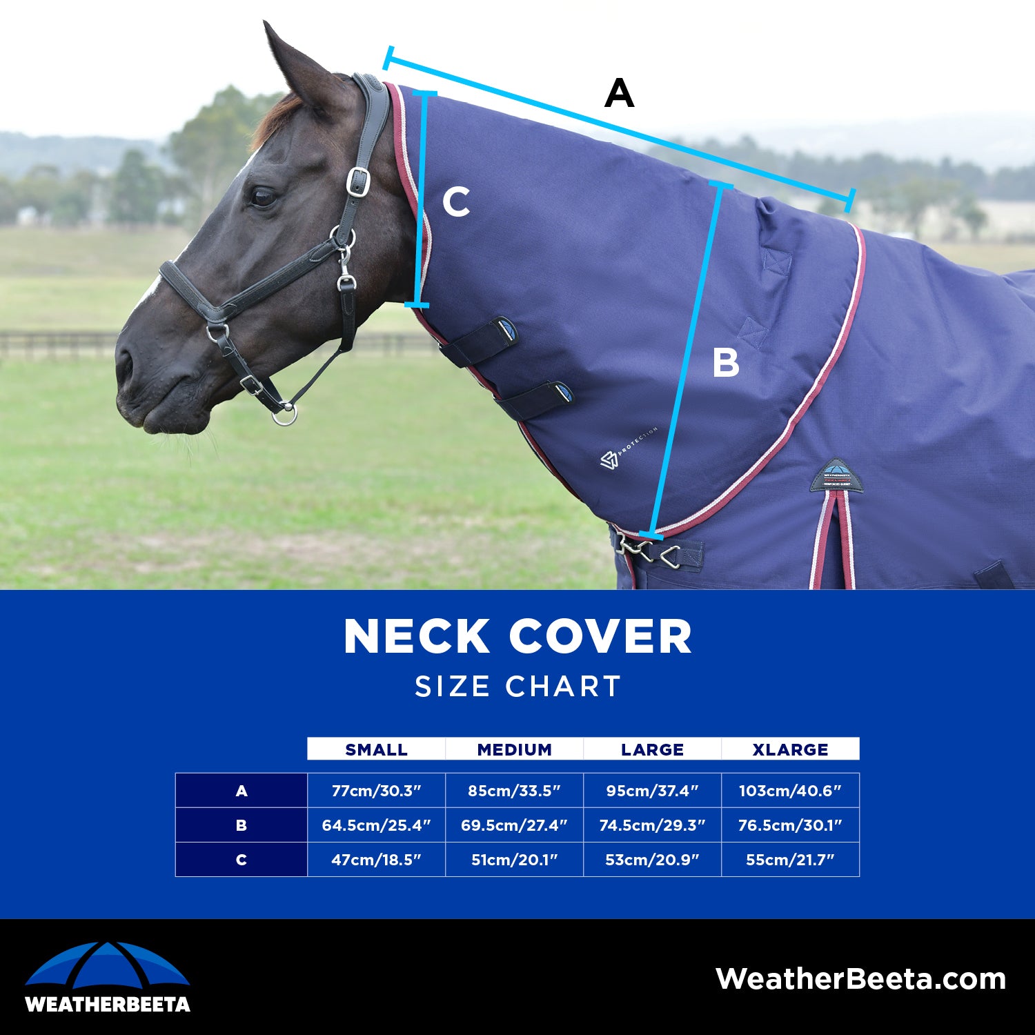 Keep your horse warm, dry, and comfortable with the WeatherBeeta ComFiTec Essential Turnout Neck Cover 0G. This neck cover is designed to withstand the elements with its super-strong 1200 denier ripstop outer shell and PFC-free Guard-Tec coating, offering unbeatable waterproof protection while remaining breathable. Whether braving rain, or unpredictable temperature dips, the 0g polyfill ensures your horse stays protected. With its smooth, 210T lining that reduces friction and promotes coat shine, this neck cover is as practical as it is comfortable. Touch tape closures provide effortless attachment to your horse's turnout, offering a secure fit for peace of mind. Adding to its thoughtful design, reflective bindings improve visibility for safety during late-night checks, and a convenient temperature gauge helps you select the perfect coverage for your horse in any season. Compatible with WeatherBeeta ComFiTec Essential Turnout Detach-A-Neck and Standard turnout styles, it’s a must-have for versatile care.