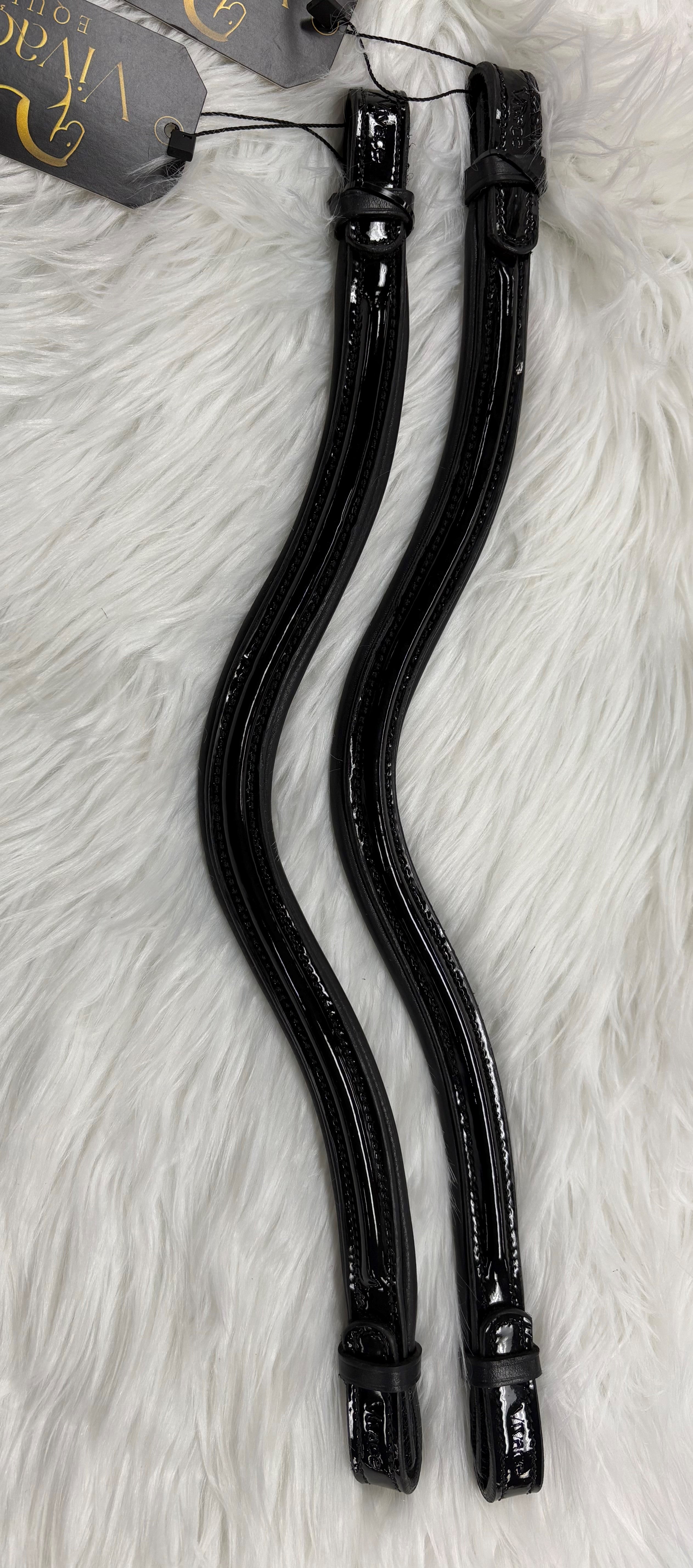 This patent leather browband adds the perfect level of sophistication that will capture attention. The innovative Velcro loop ensures effortless interchangeability, making the process of changing browbands an absolute breeze.
