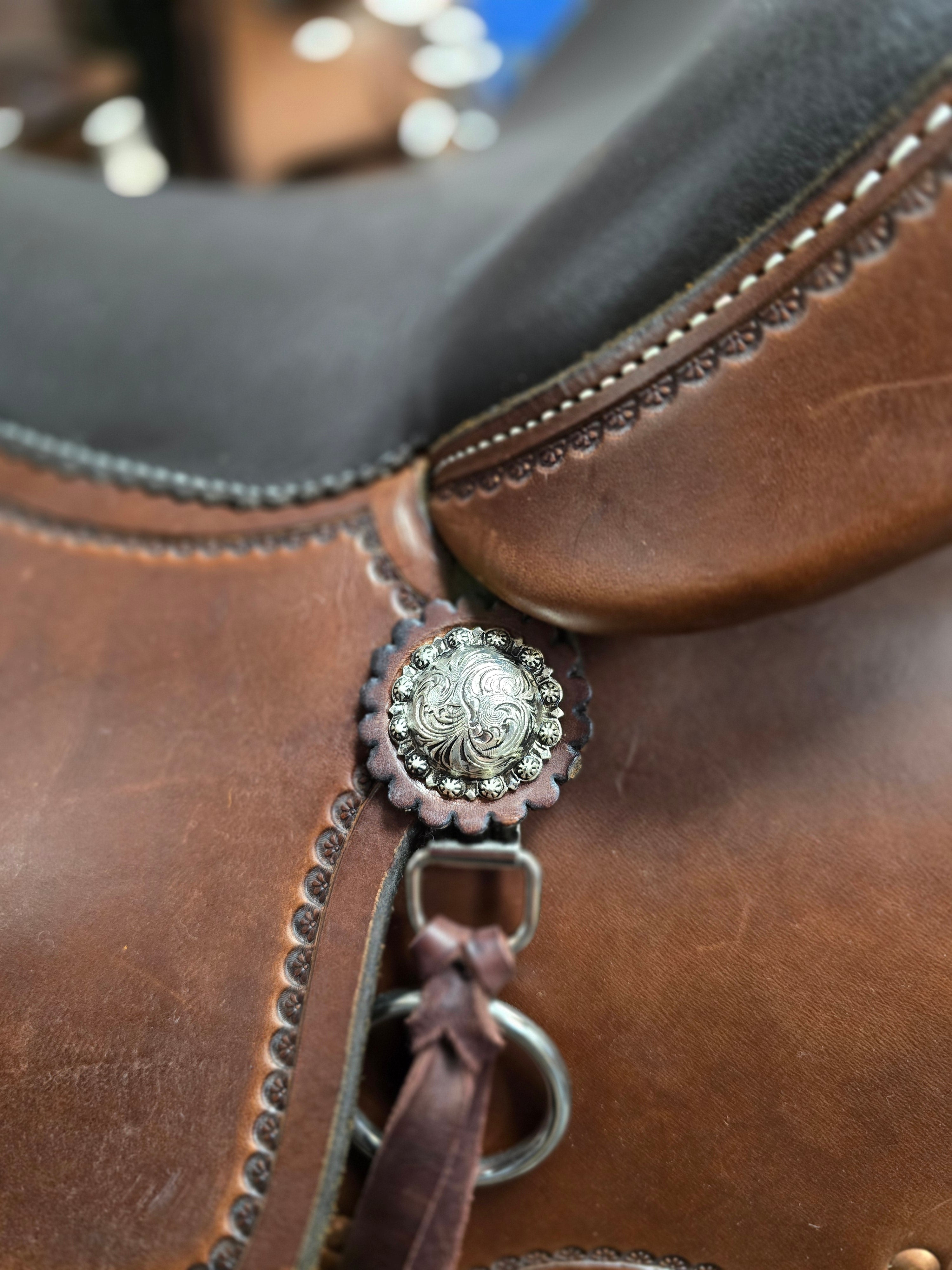 - 15" and 16" have the rope border conchos, the 17" has the 3D concho.