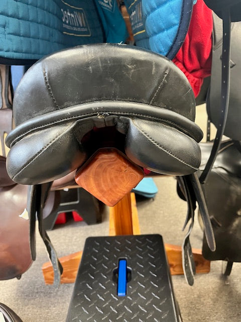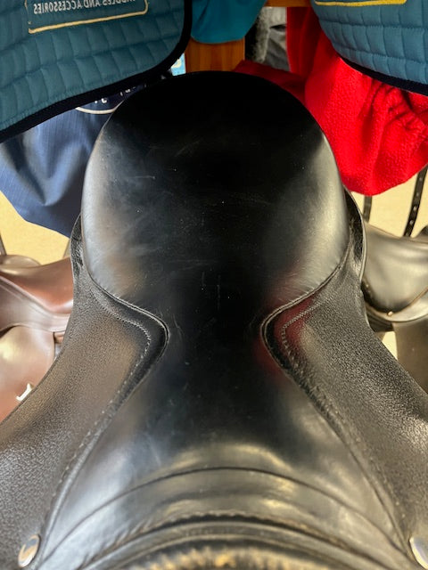 Great youth dressage saddle for those students just entering the dressage world. This Shannon Dressage Saddle by Thornhill has a 15" seat and is nicely wide at the tree point and all the way through the twist of the saddle providing good clearance of the pony's spine. Great saddle for a large Shetland or small Welsh Pony.