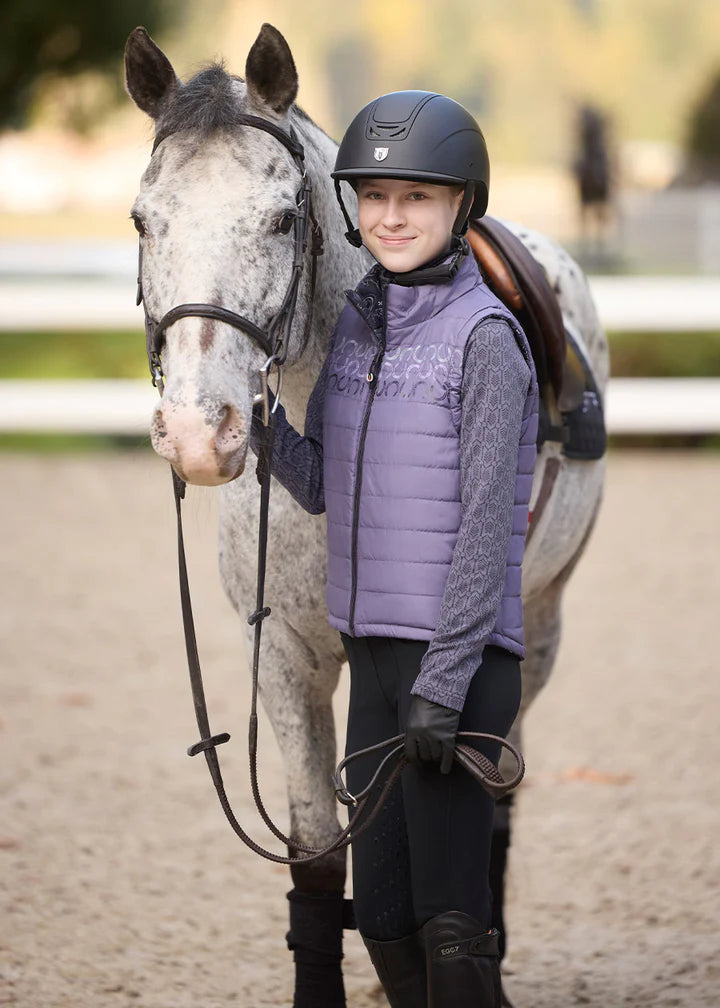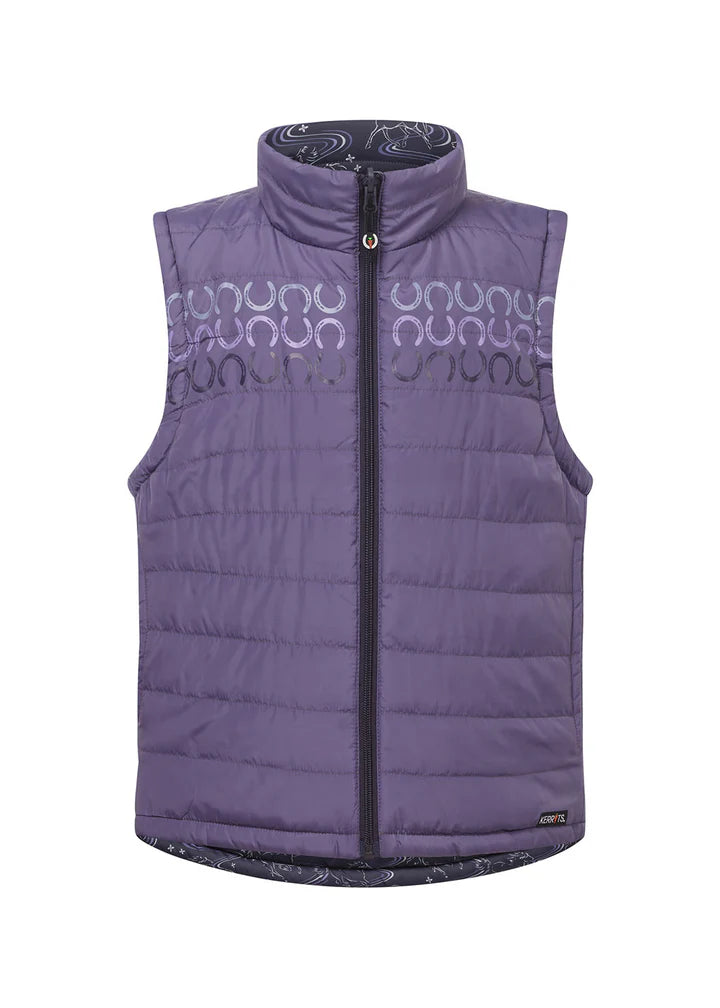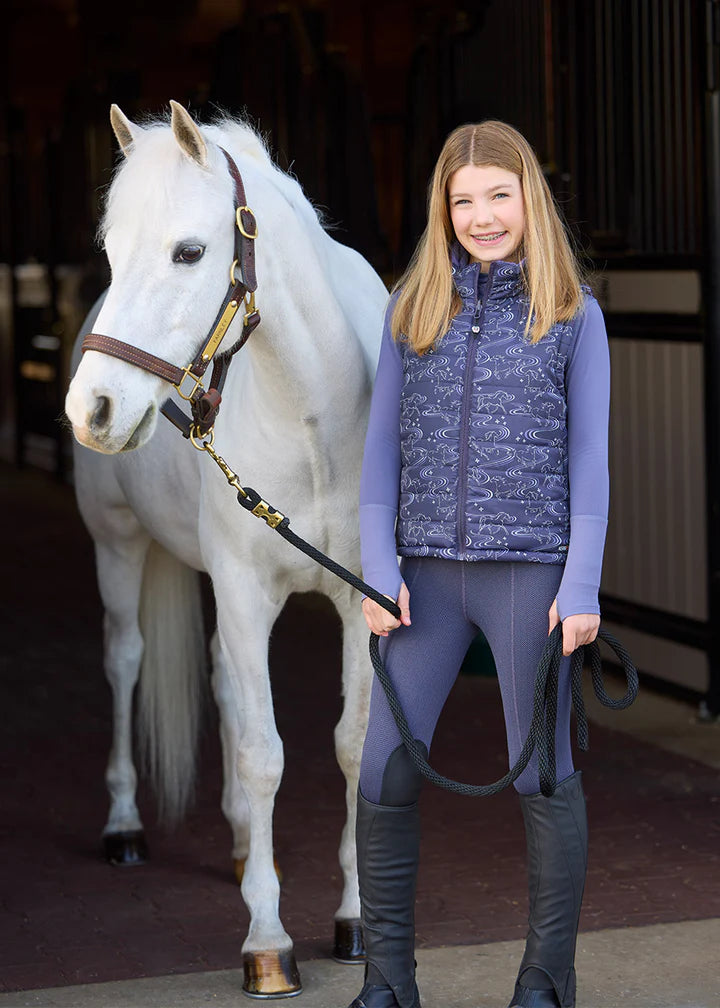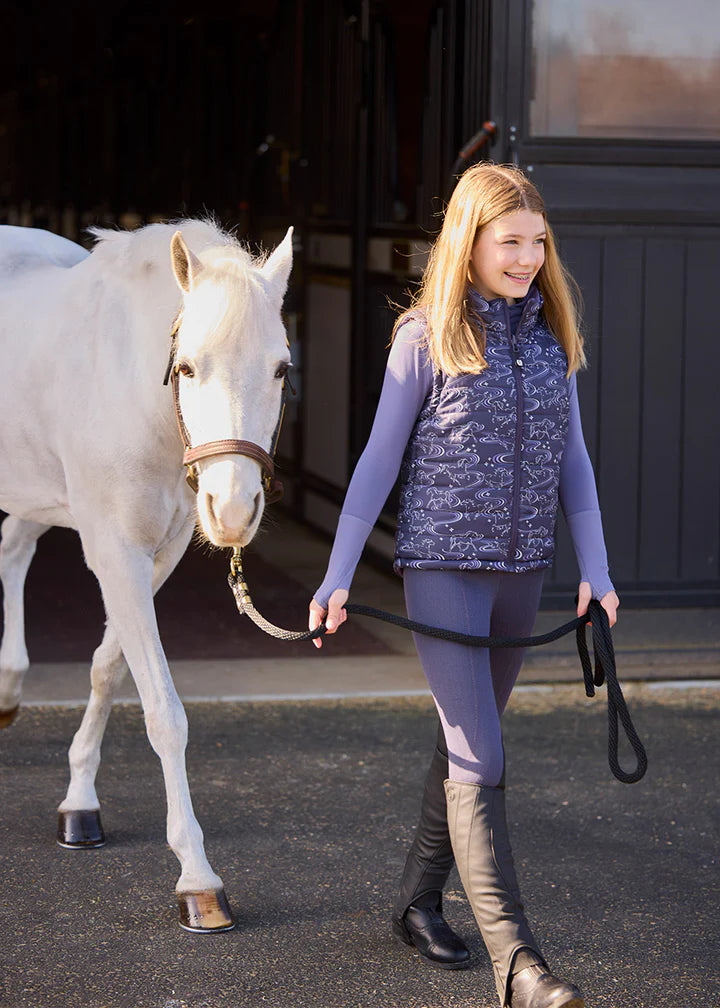 This quilted, reversible vest doubles the fun for young riders, featuring equestrian designs on both sides for two looks in one! With 100-gram poly-loft fill, it provides core warmth as a perfect three-season layer. The print side showcases Kerrits’ exclusive “Ride the Wind” design, while the solid side adds a...