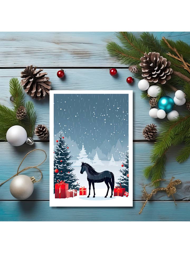 Black Horse Holiday Christmas Card is packaged individually and comes with a craft paper envelope and sticker seal.