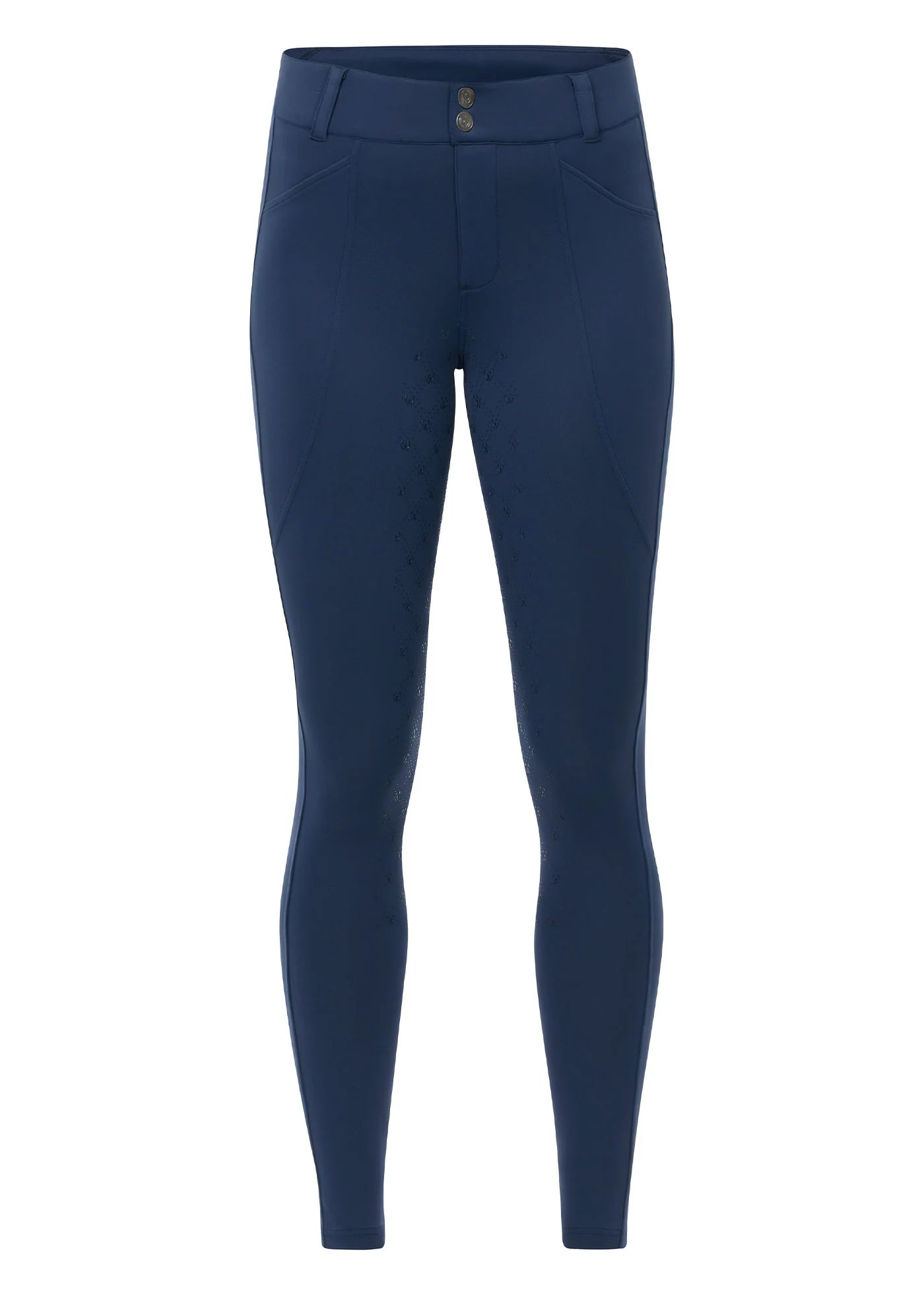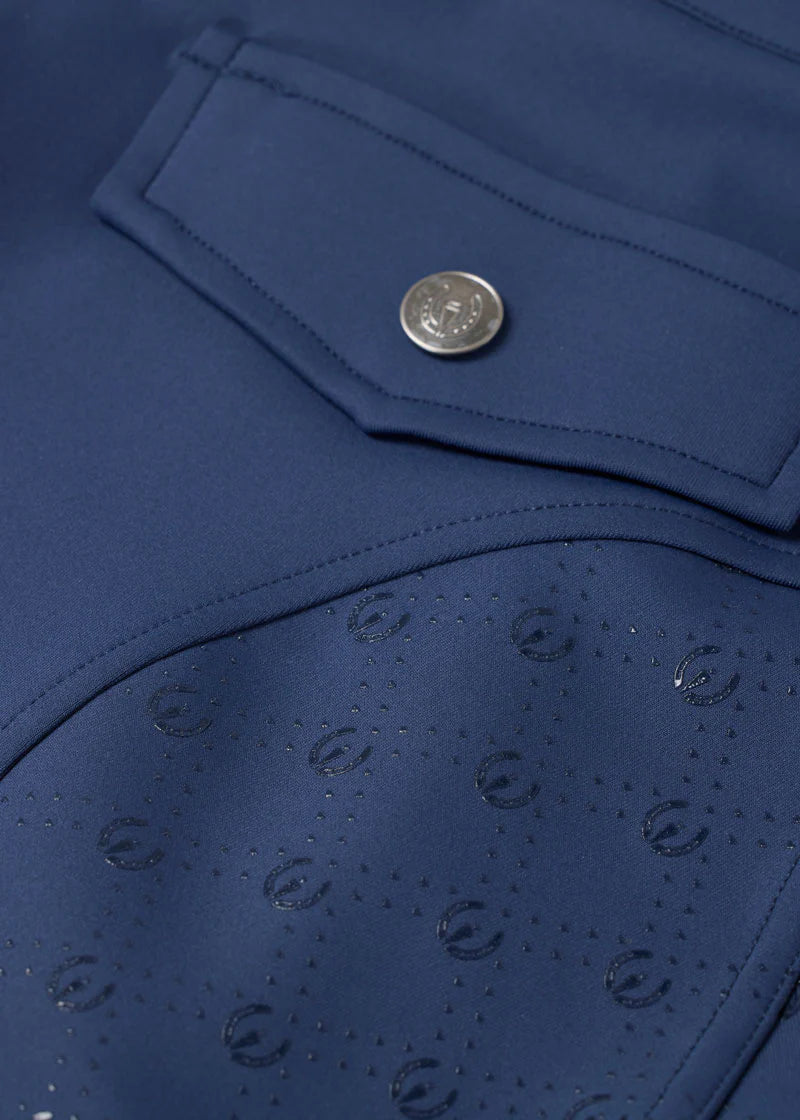 Designed for peak performance on the hottest training days, this modern front-zip full seat breech blends classic tailoring with advanced Coolcore® fabric for sleek support and powerful cooling. Built with Biomimetic Fiber Geometry™, it wicks, dries and cools faster, ideal for long training sessions under the sun. Light compression offers smoothing coverage with excellent recovery, while the flexible silicone full seat grips keep you confidently dancing around the dressage ring. Finished with UPF+50 sun protection, belt loops, and two streamlined side pockets for ride-ready functionality.