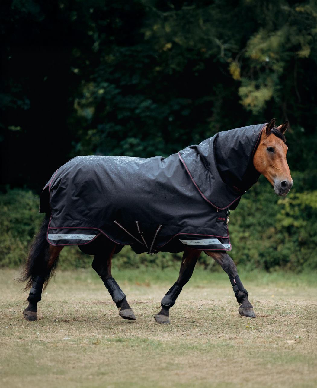 The unique 1200 Denier breathable waterproof outer is uniquely cut across the full width, eliminating leaks with no back seam. Coupled with an antibacterial, anti-static shine-enhancing lining, it stays perfectly balanced on your horse. 200g thermobonded fill wards off cold with warmth that won’t bunch up or slip down.