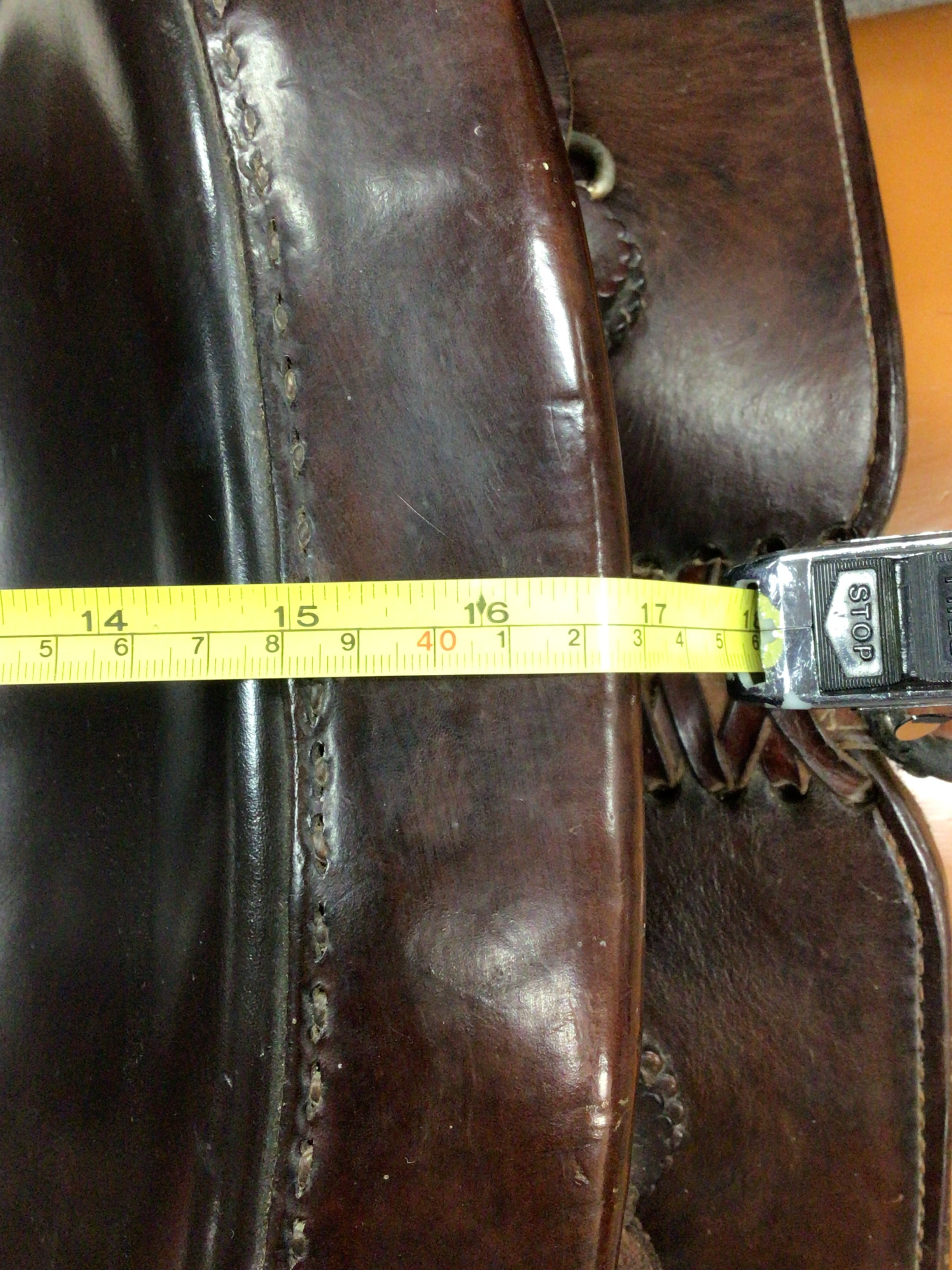 Circle Y Pleasure saddle with the Arabian tree. Well taken care of and in great condition. The skirt length is just shy of 25” with a leg cutout. Single C in skirt riggin at 7/8 position. Has strings in all corners and a crupper ring threaded through the rear skirt lacing screwed into the tree for strength.