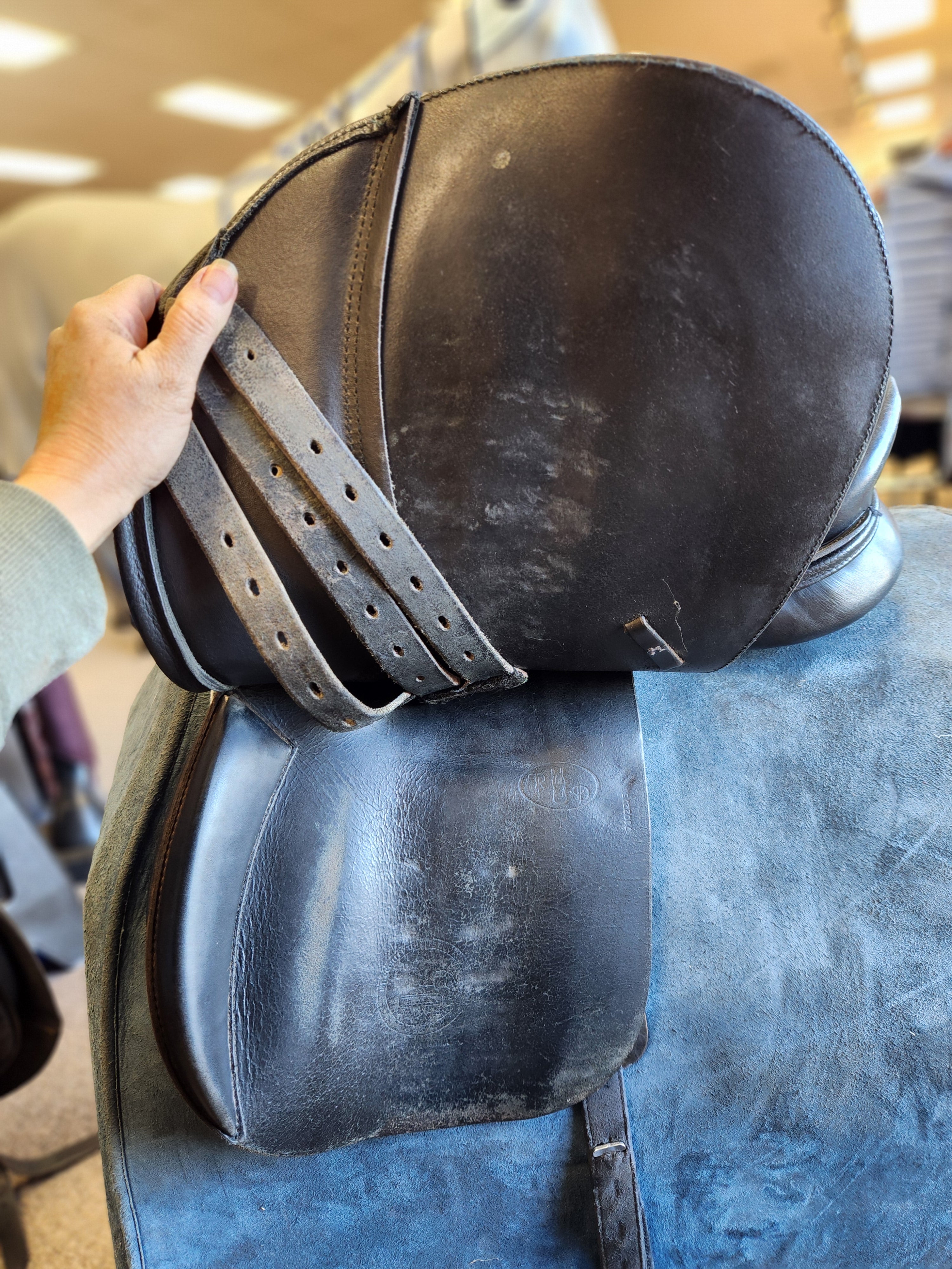 Used Collegiate All Purpose saddle in good condition. 16.5" seat on a medium fixed tree, the gullet measures 4", and the flap measures 16". Includes fits. A semi-deep seat and longer flap allows the rider to do some dressage, while a forward flap still allows for jumping as well. Would be perfect for anyone looking to get started, trail/pleasure ride, 4H or WAHSET, a lesson program, etc.