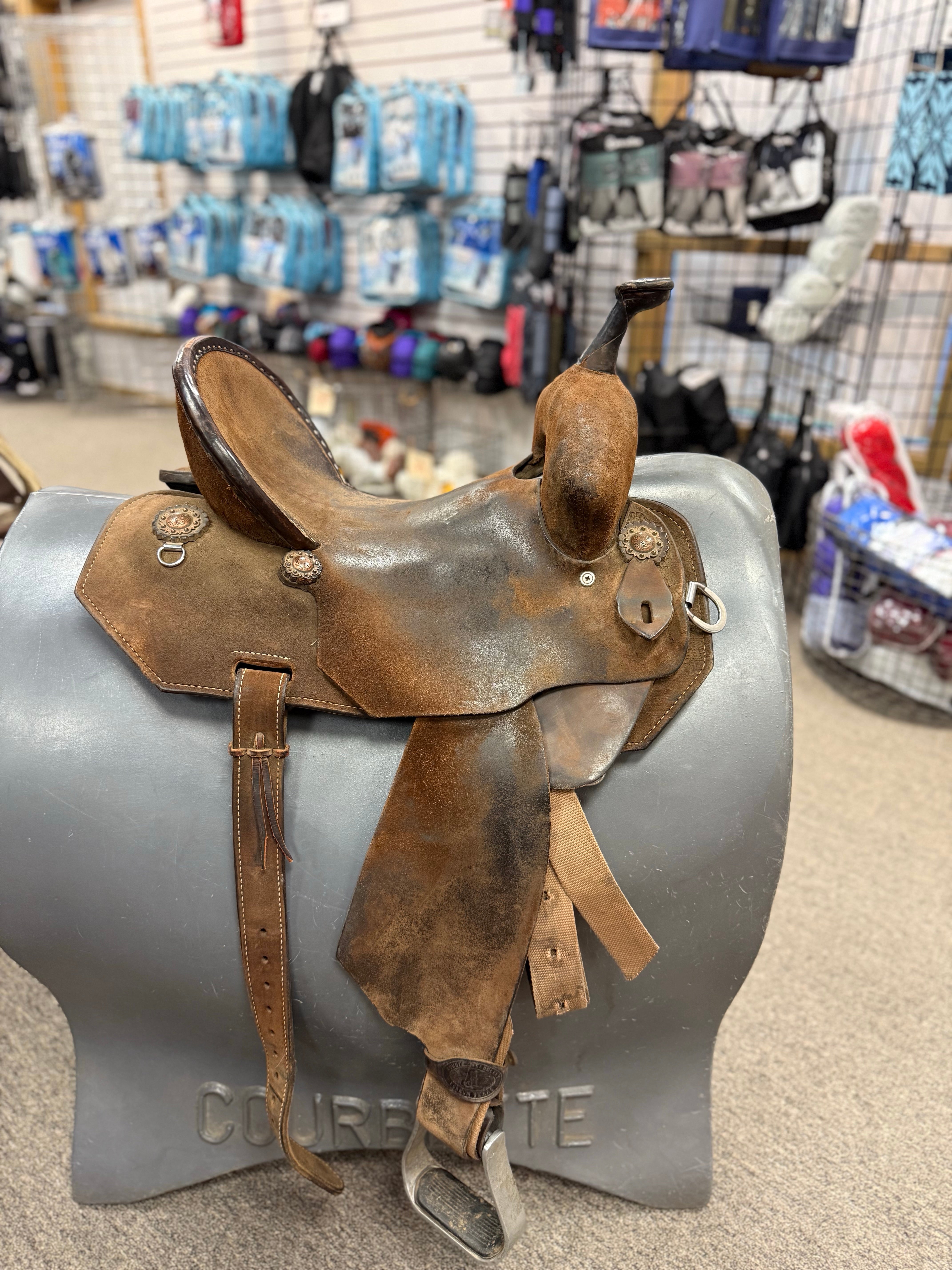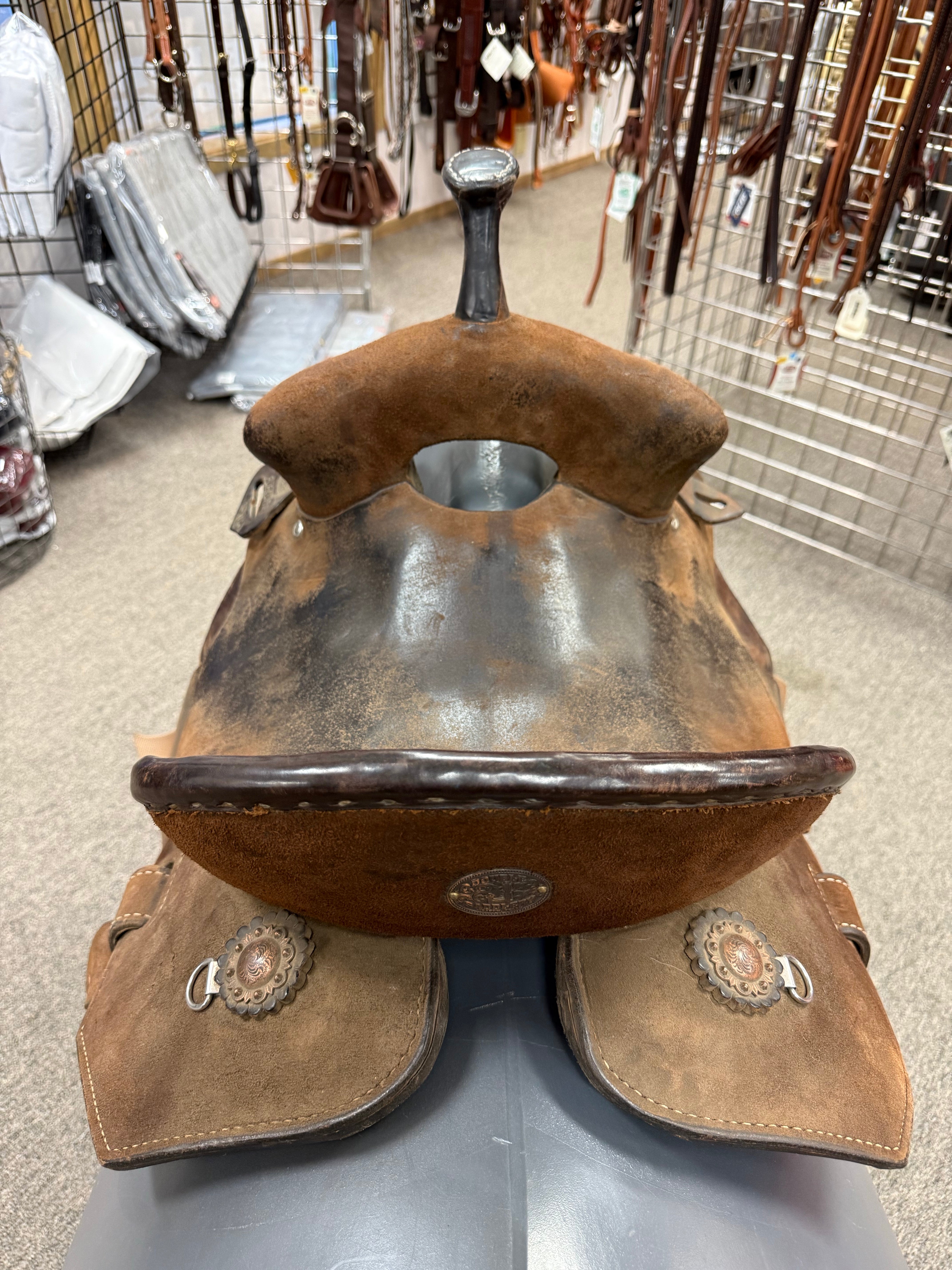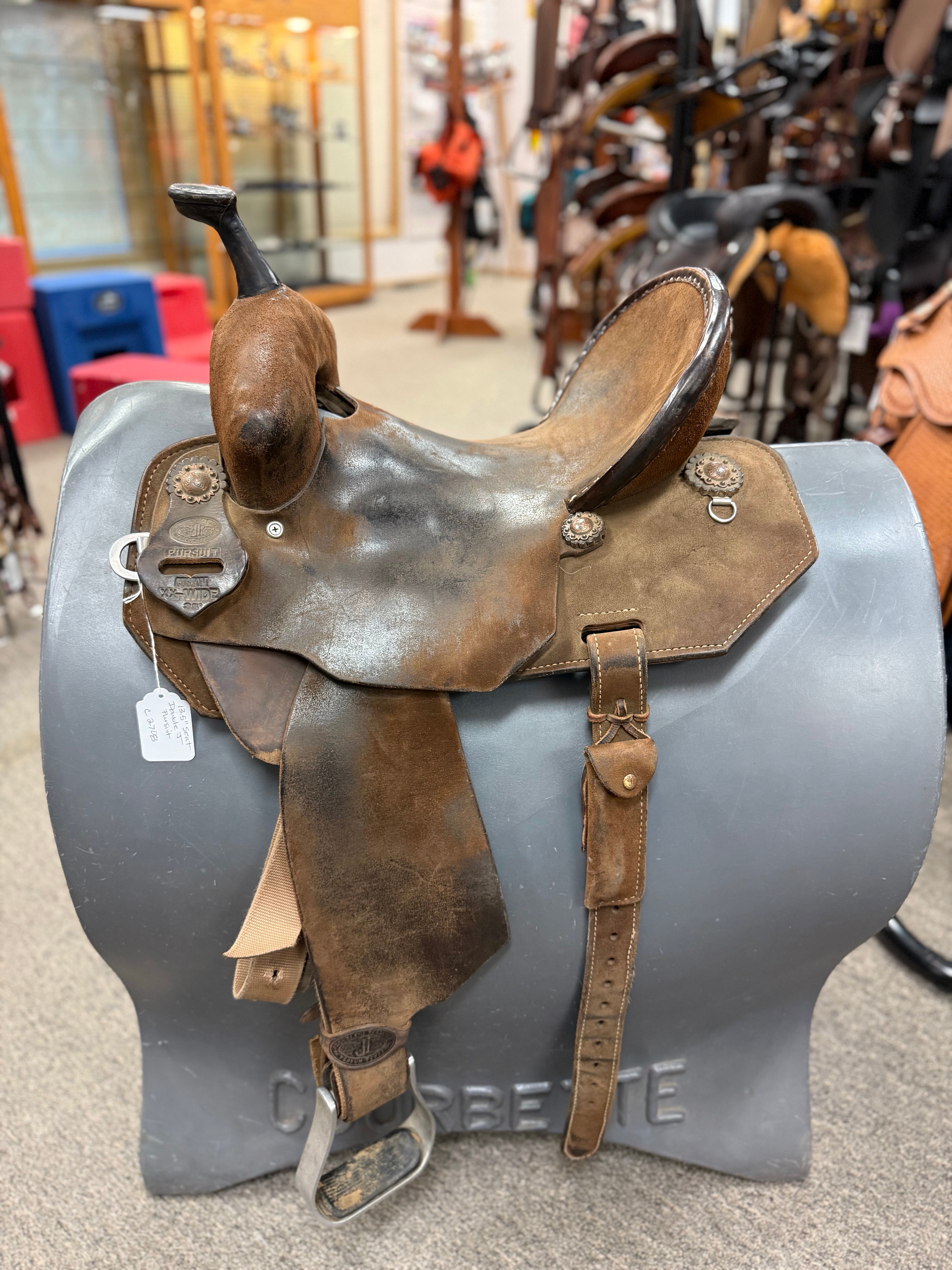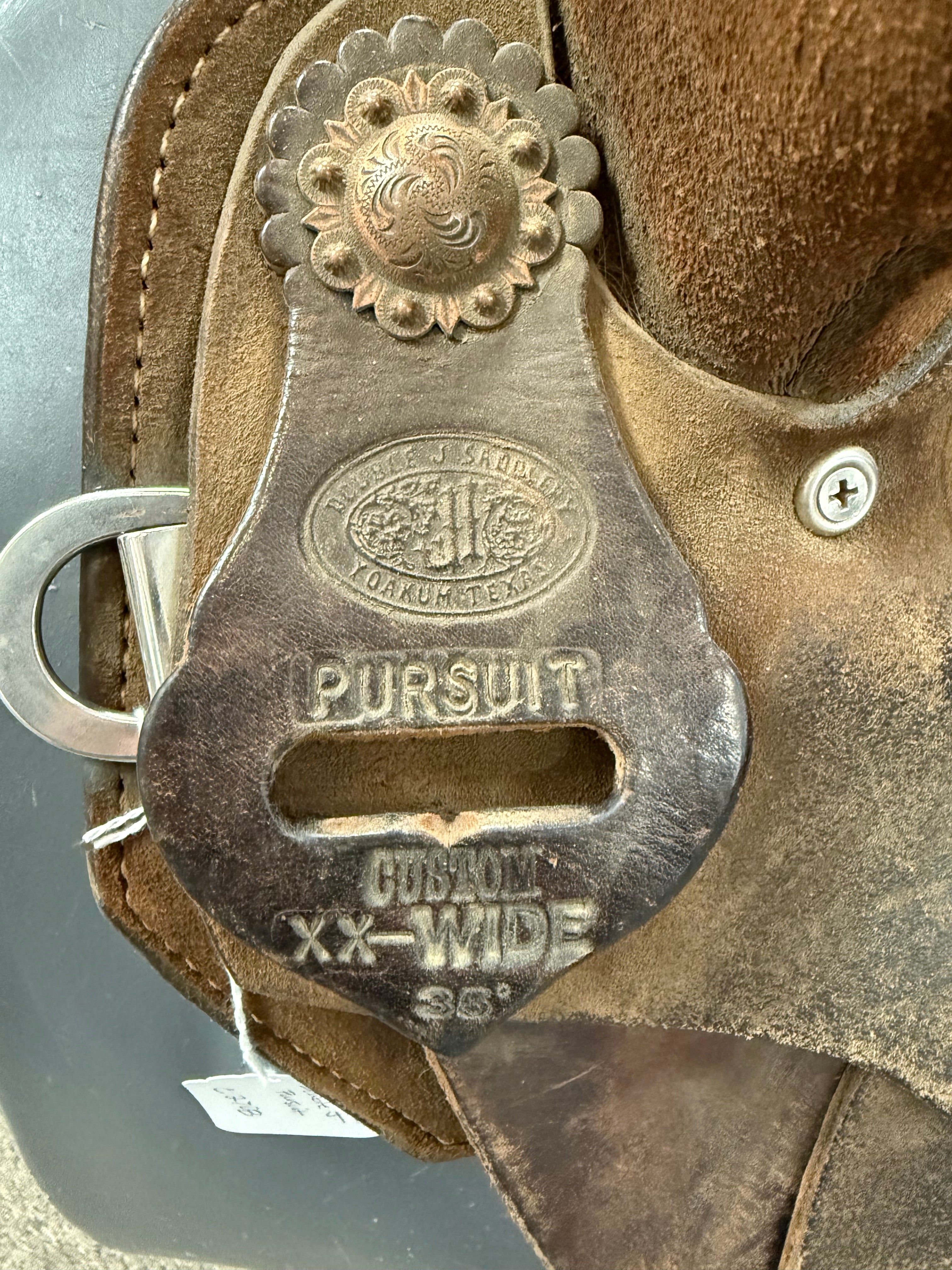 Used Double J Pursuit Pro 13 1/2" XX Wide with 35 degree bar angle, 3 Way riggin, pencil roll cantle, spinal relief foam lined skirts with 90* cut corners. Normal wear and a little dusty but in good condition.