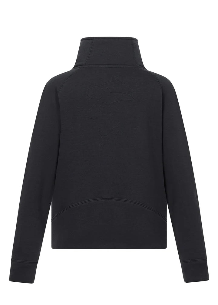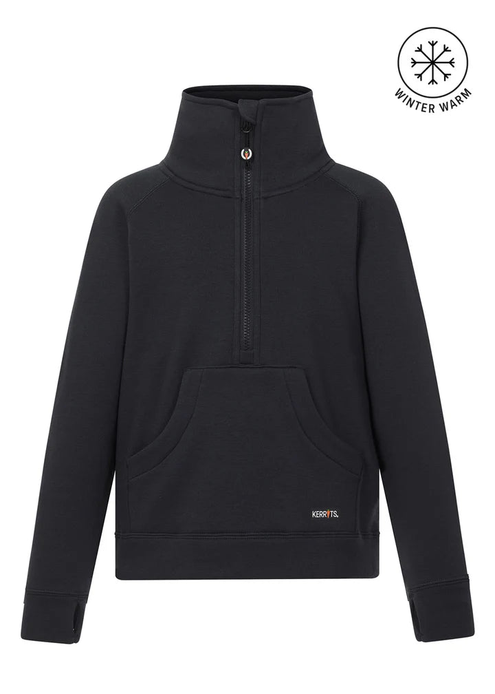 Keep young riders warm and stylish in this cozy crop-style sweatshirt, designed for everyday wear with a touch of equestrian flair. Featuring Kerrits’ exclusive “Etched Equine” design subtly embossed on the back, this mid-weight sweatshirt combines an ultra-plush fleece interior with a soft, matte exterior for excellent thermal warmth. The cropped fit and tall stand-up collar pair perfectly with winter tights, while the extended half-zip makes for easy on-and-off over a helmet. Fleece-lined hand pockets and thumbhole cuffs add extra warmth, ensuring comfort on brisk days at the barn.